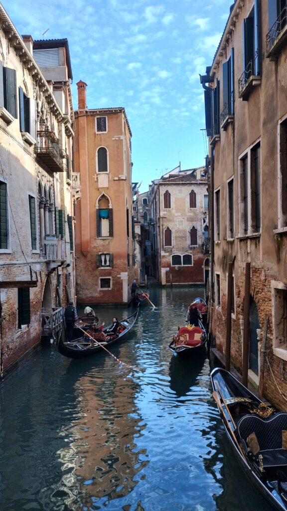 - ベネチア:飛行機で移動。運河沿いを散策、小さなカフェで休憩